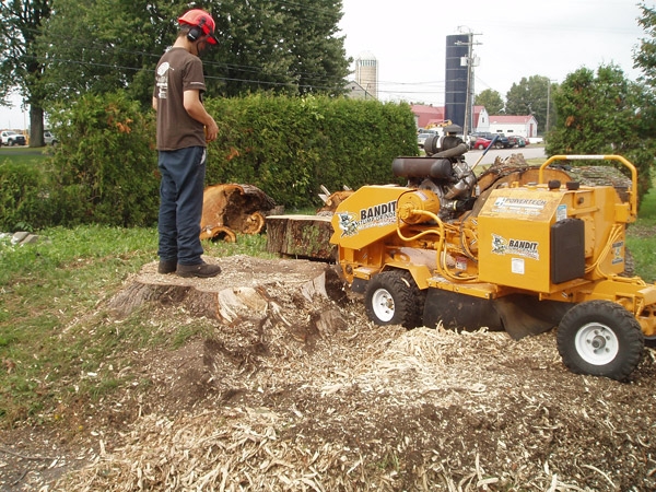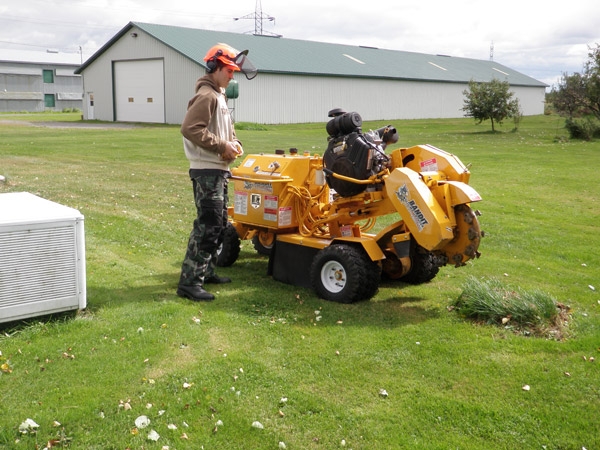 L’essoucheuse permet de déchiqueter les souches en copeaux...